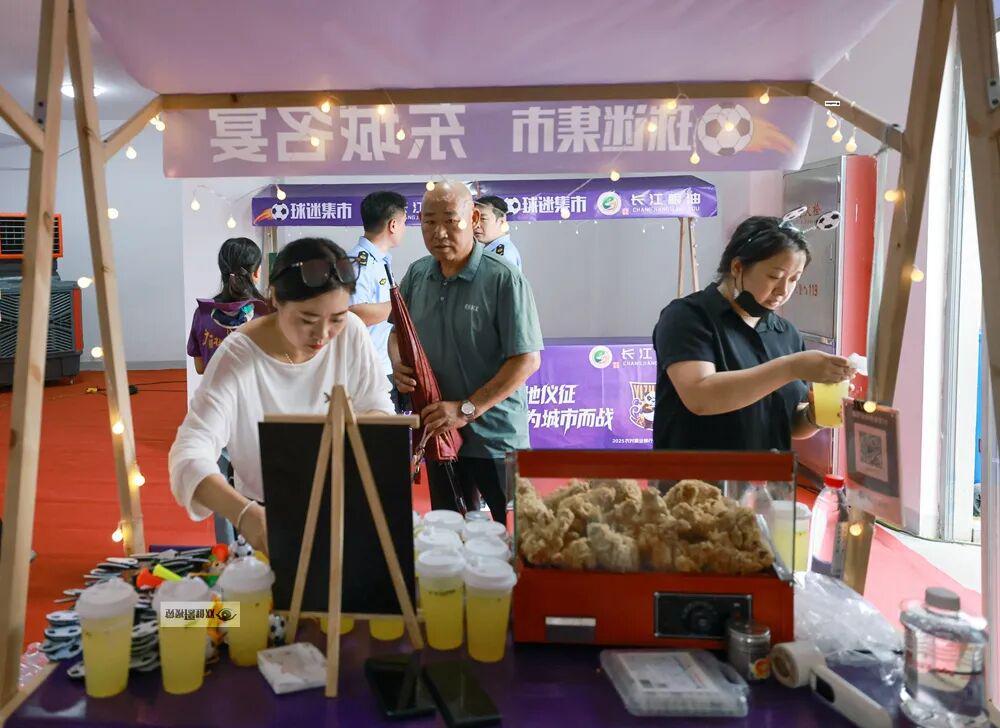 在体育场北侧的互动市集里,您可以在享受比赛的同时领略仪征非遗文化、品味仪征美食,挑选心仪的特色文创产品,将这份赛场激情与城市记忆一同打包,带走专属于此次 “扬超” 赛事与仪征之旅的独家纪念。